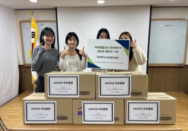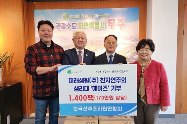 생활용품 전문기업 미래생활㈜(대표 김광호)이 지난 7일 자사 브랜드 ‘잘풀리는집’의 친자연주의 여성용품 ‘헤이즈’ 1천4백 팩을 무주군 청소년과 출산가정을 위해 …