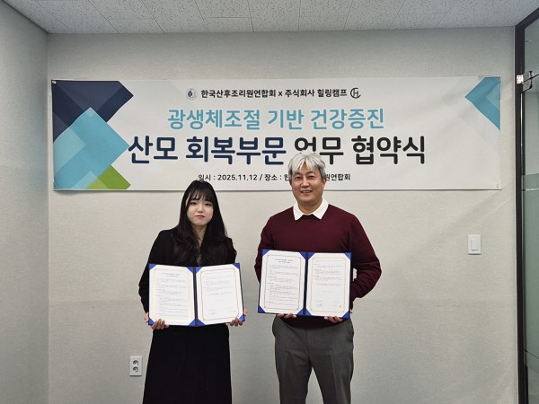 한국산후조리원연합회(대표이사 이석범)는 2025년 11월 13일, 힐링캠프(대표 최지연)와함께 **출산 직후 산모의 신체 회복을 돕기 위한 상호 업무협약(MOU…